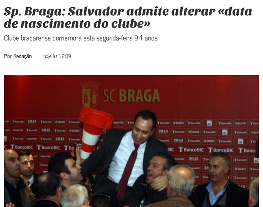 Depois de Benfica e Porto cortarem alguns anos (ou décadas) à sua data de fundação, ficámos ontem a saber que há um terceiro clube em Portugal que poderá padecer da mesma enfermidade (obrigado, @nunovalinhas). Vejam lá se adivinham qual é: