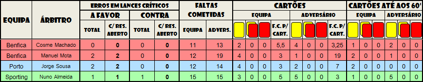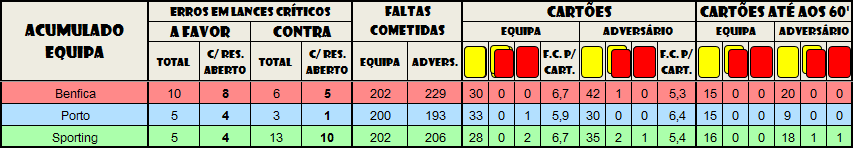 Outra coisa, porque não considera por exemplo a expulsão ridícula do jogador do nacional contra o SCP mas já considera um suposto segundo amarelo por mostrar ao Lisandro?