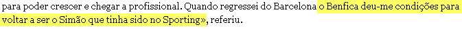 O Benfica foi o clube mais importante porque lhe permitiu voltar a ser o Simão do Sporting. Há chimpanzés que conseguem construir raciocínios mais bem estruturados do que este...
