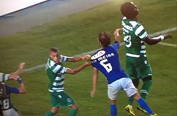 Mas olhando para a fotografia, é inegável que Slimani agarra a camisola de João Meira. Penálti indiscutível? Parece que sim, mas como sei que as imagens paradas podem ser muitas vezes "manipuladoras" (não o refiro num mau sentido), dei-me ao trabalho de recorrer à oitava maravilha do mundo que são as gravações automáticas para tirar a limpo as movimentações dos jogadores e a posição da bola.